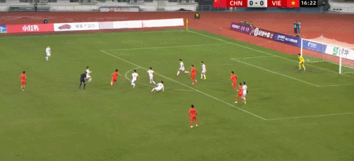 33' A equipe chinesa enviou um passe ameaçador da esquerda para a grande área, e o flanqueador na frente do gol foi um passo mais lento